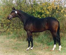Chronos by Mahagoni out of Hama by Matador. This approved Trakehner stallion was shown under the Dutch flag and was a rising star in Europe's dressage scene when an accident also ended his life untimely. He won International Grand Prix competitions under Anne van Olst and also left several registered brood mares in the Netherlands and Germany.